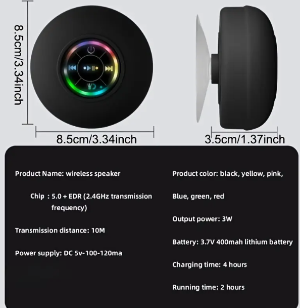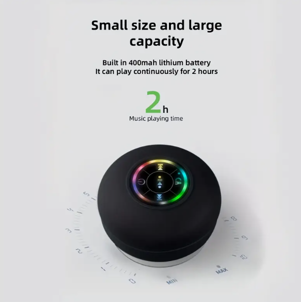 Haut-Parleur Sans Fil Étanche et Portable avec Ventouse - Rechargeable par USB, Autonomie de 2 Heures, Fêtes, Salle de Bain, Voyage & Extérieur, Lumière RGB pour Salle de Bain, Qualité Sonore HD
